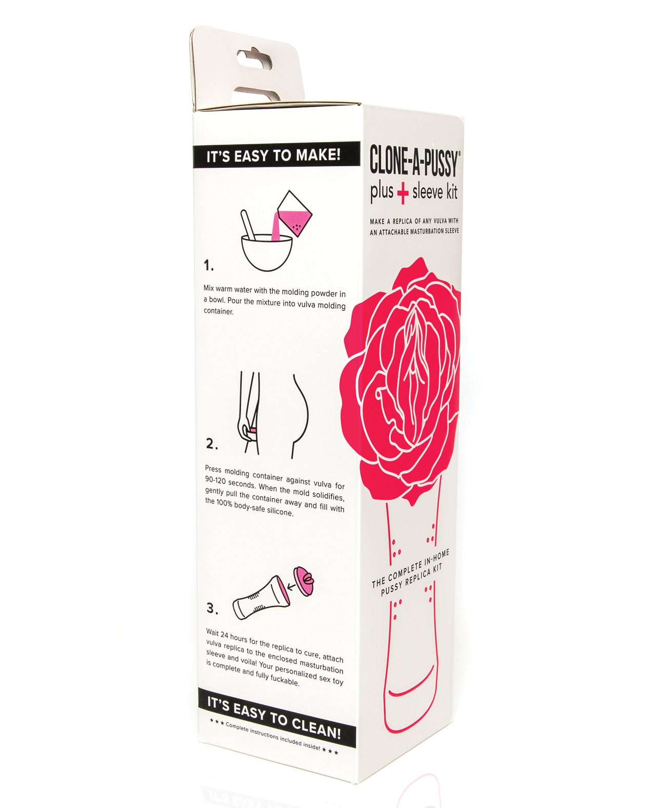The patent-pending kit uses skin-safe molding materials that are comfortable on all skin types. The included sleeve and case are engineered for easy assembly. Sleek, modern design creates a lifelike, personalized feel for solo or partnered play.