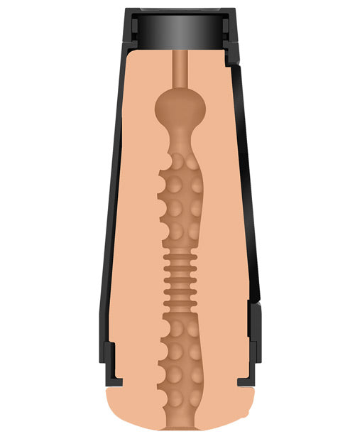 This masturbator uses ultra-soft, body-safe ULTRASKYN material to mimic real skin and includes a dual cap system for discretion and portability. The internal sleeve is textured to heighten every moment and the outer hard shell ensures durability and ease of use.