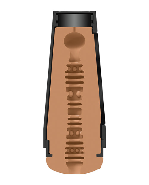 The stroker's lifelike ULTRASKYN material mimics the feel of real skin, offering durability and comfort. Its discreet, hardshell case ensures privacy and makes it perfect for storage or travel. The interior is designed to provide varied sensations unique to Honey Gold's Main Squeeze lineup.